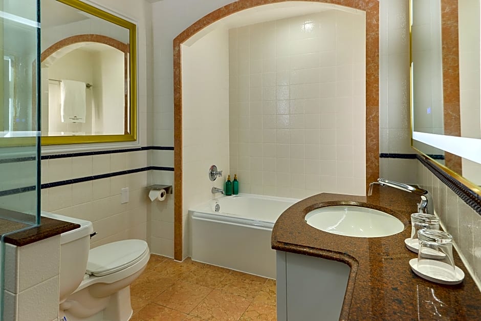 One bedroom suite, king bed, whirlpool, separate shower, sofa bed Feel at home in this spacious one bedroom suite which features a comfy King bed, whirlpool, separate shower, wet bar, microwave, refrigerator, two 32-inch TVs, sofa bed and accessible balcony overlooking the city. Peter Roth amenities, hair dryer and bathrobe.